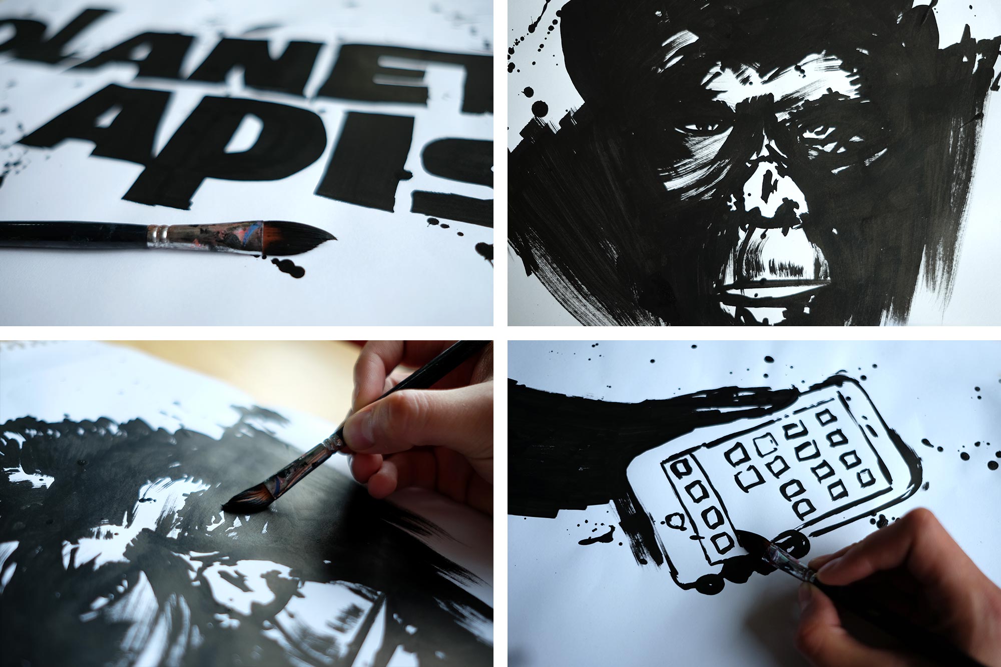 We reached for the paint and brushes to give it a look and feel that was independent of the movies themselves. We aimed to capture the dark, grungey atmosphere of the previous movies by using aggressive strokes and splats. We also wanted it to feel like a Rubrik event without it feeling too corporate.